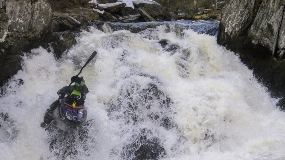 Small Ledge (III). A small ledge of about 5 or 6 feet was only made difficult by some wood in the left side of the landing, necessitating a hard right line and boof.