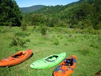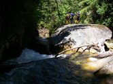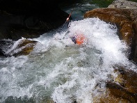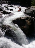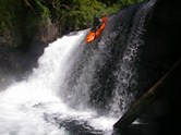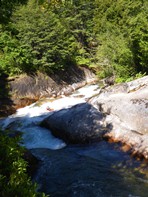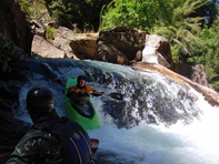 - California Slide (IV+ to V). The put-in drop has two distinct parts. The first is a steep 15 foot slide. We ran this down the center. There is then a short pool before the main event. A long medium angle slide that is best run right. In the middle there is a kicker that will land you on the rock ridge behind it. At low flows it is very hard to get to the right of the kicker. You can hike up river right to run laps on this drop. Just downstream is a small exit drop that is class III.