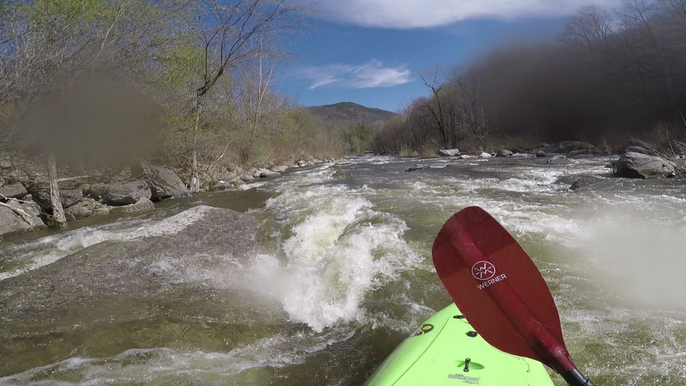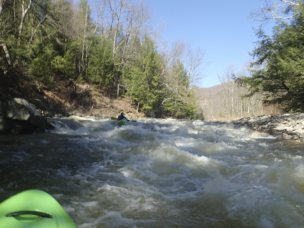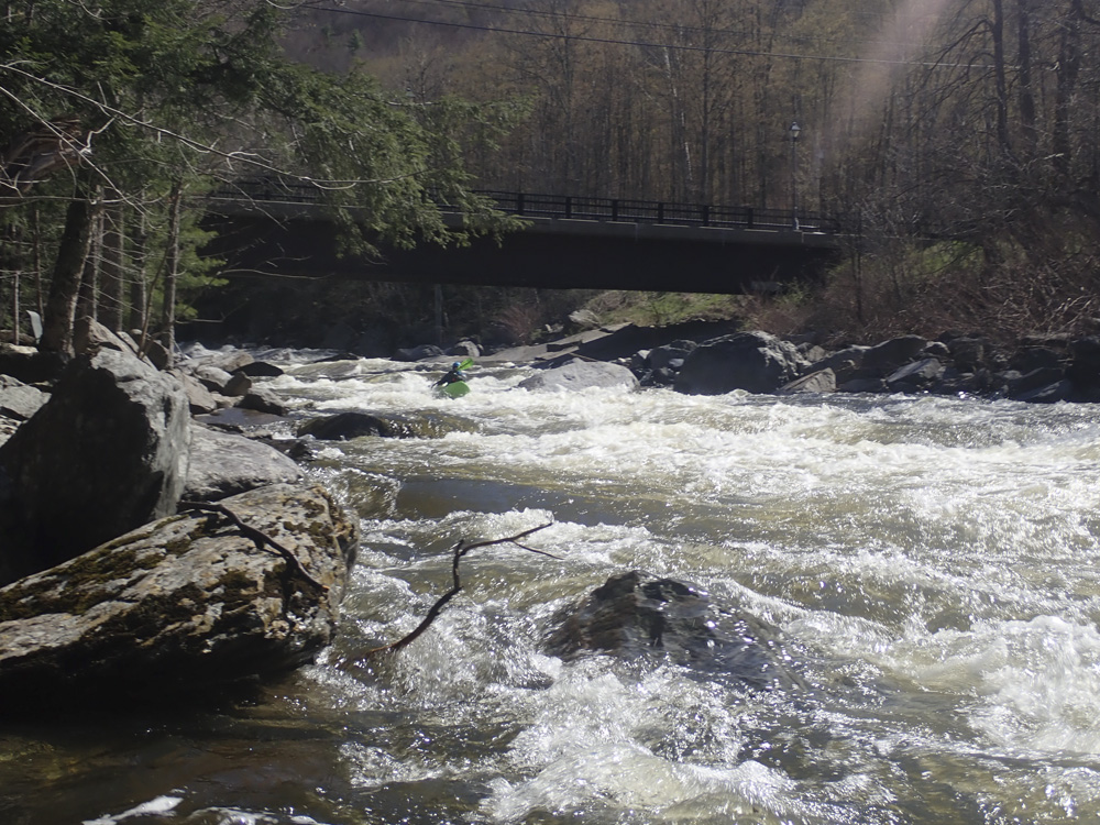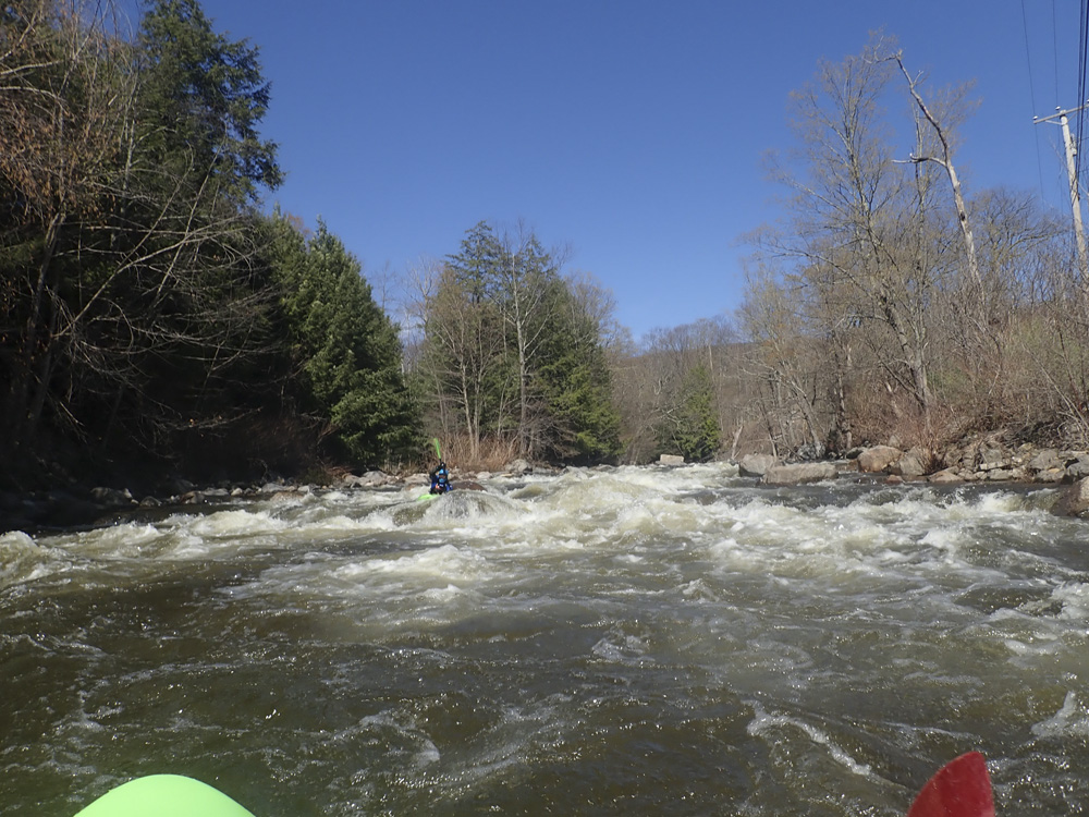 So I honestly expected a little more from this run to be honest. It is a regional go to for its difficulty. Mostly class III with one class IV. However, the rapids are of a non-descript nature that make for less fun in my mine. Just kind of continuous boogie. However, the last mile is rather run. From the bridge in Bristol the action gets started with what they call a class IV. Perhaps if you get adventurous and go off the center line it is more on the IV range, but even boat scouting we found a very straight forward line directly down the middle. So I would put it at IV- at the hardest. Downstream though, as you round the final corner near the Lumber Yard is a fantastic rapid that lasts for the final half mile to the car. It is just on the class III side of things, but has numerous fun boofs and holes to punch and was the highlight of the run for me for sure.