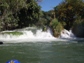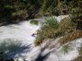 Straight Double Ledge (IV-). An obviously larger horizon line is a a 4 foot drop into an 8 foot drop. The left side looks like a sneak but runs into sticks that would hurt. The far right side is a tricky double drop that also has strainer potential. The best and easiest line is to be a couple feet right of the island and drop off the ledge straight and clear.