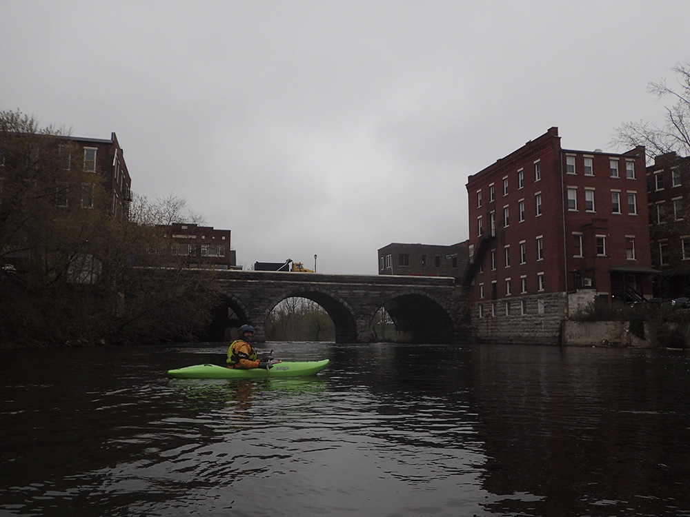 Put-in: Walk back up Mill St (there is a foot bridge along the way that crosses the river that you can scout from fyi) to Main St. Cross Main St, continuing upriver (or detour to scout from the Main St bridge by turning left). Once on the upriver, river left, side of Main St, continue onto Bakery Ln. After you walk past some cute restaurants, there is a break in the buildings and you can access the river.