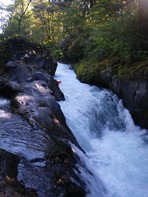 Hole on the Left (IV-). Two rapids below the Exit boof, is this somewhat small but dangerous rapid. Just run down the left and punch the hole. But the key is then to eddy out on the right because the lip just downstream is a huge rapid that is now always portaged.