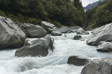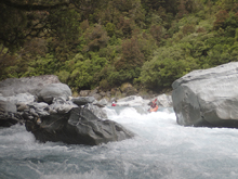 - Confluence with the Whataroa which enters on the left. Downstream there are a few fun fluffy wave trains but nothing that you need to stay on your toes for.
