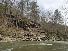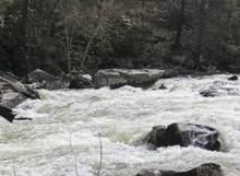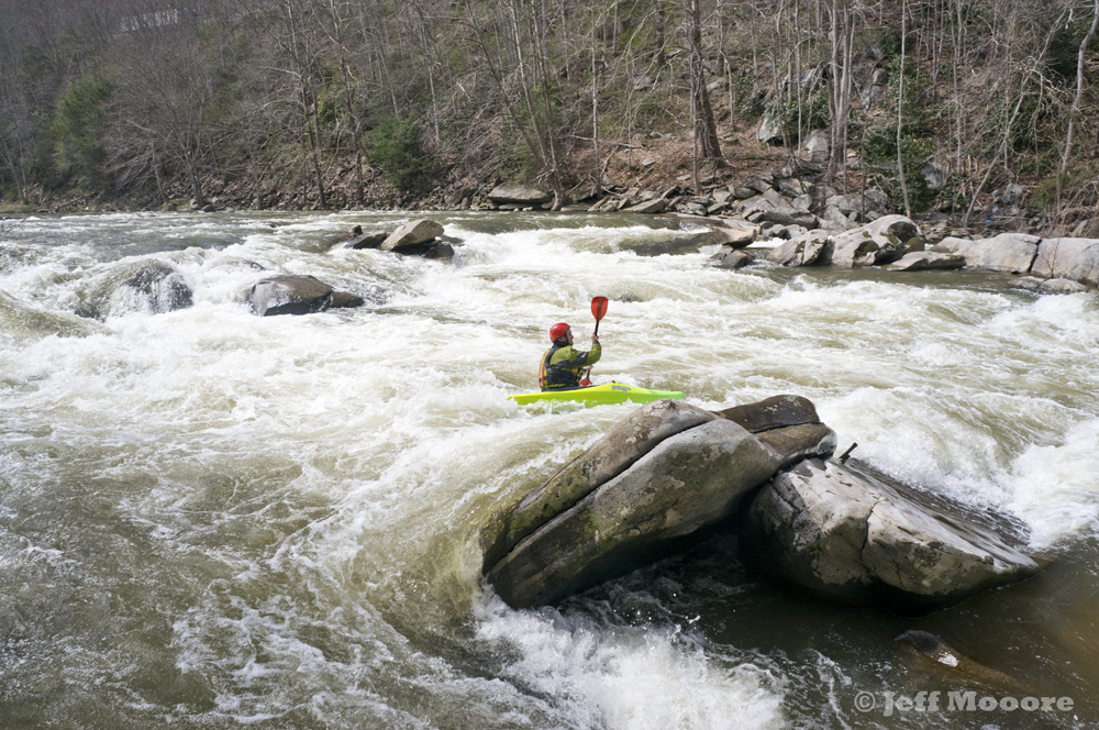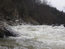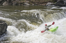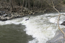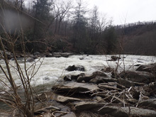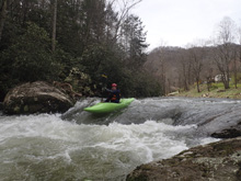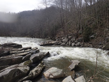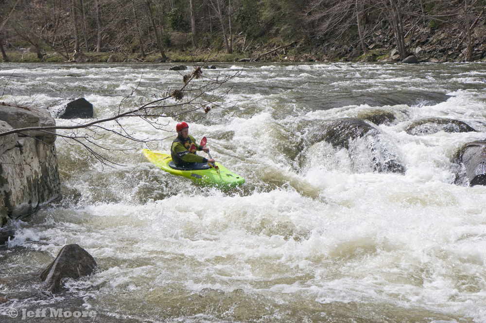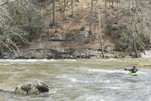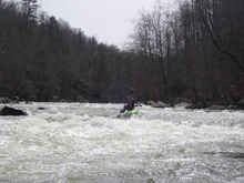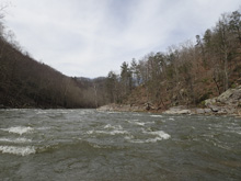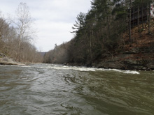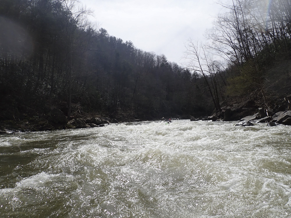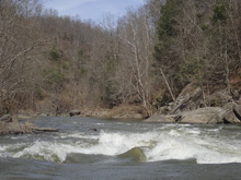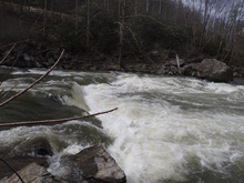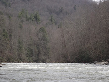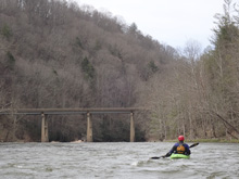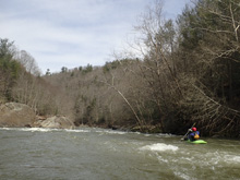 This run really was surprisingly good. And it has a gauge. So I am really not sure what it doesn't get run more often. I found it to be similar to Chili Bar or Pigeon Point, classic class III pool drop runs from California. Sure, it isn't the non-stop action that you get in the smokies, but there are more class III moves to make here then on the gorge, and better surf. For my money, this is a far superior run that the gorge in every way. Other than, it doesn't have a dam release. But, it does hang in for a long time after rains. In fact, a week ago we got a small rain that broke the river from 1,300 to 2,500 cfs. It is still at 1,200 cfs. A week later! The drainage is just that big!