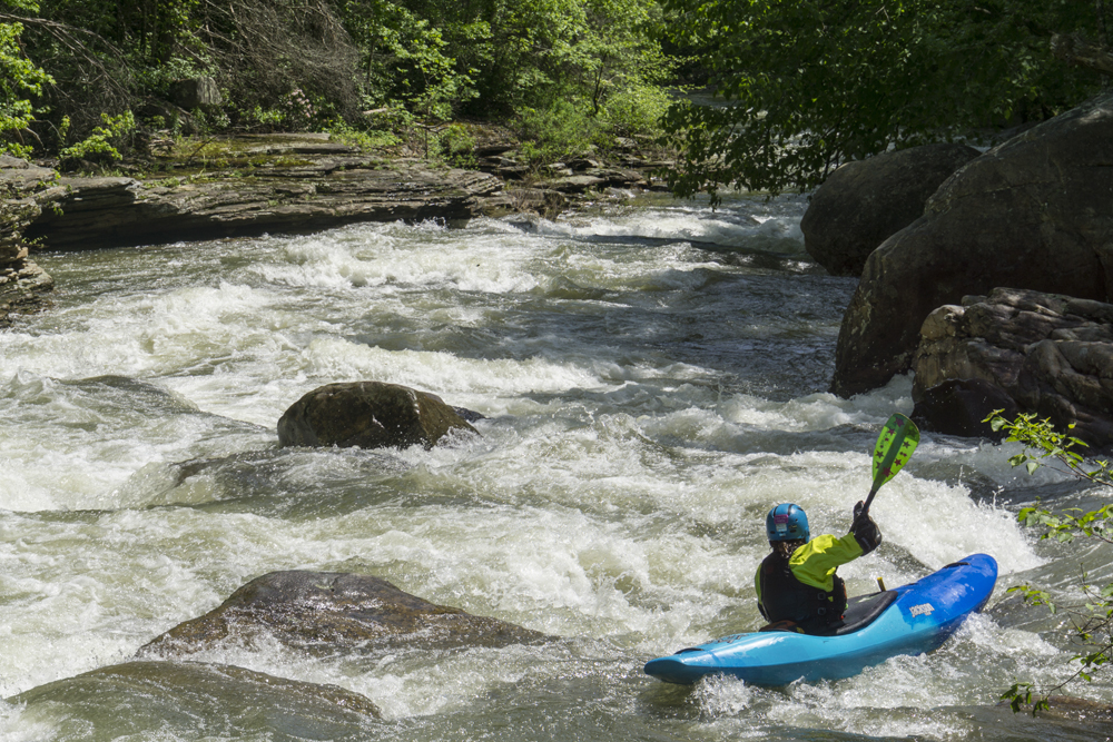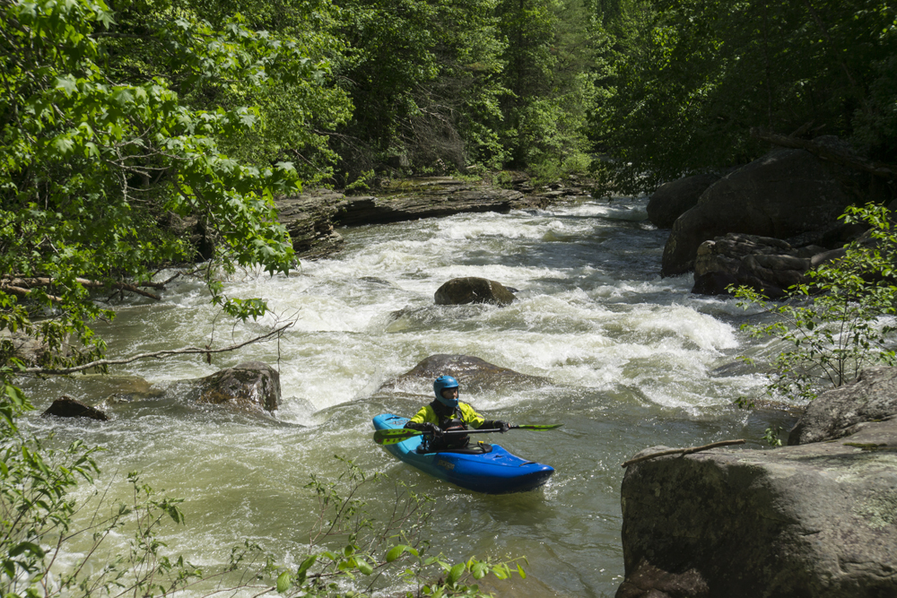 Update 2018 Alternate Put-in: In 2018 I went back, and the Shut in Gap road was being paved, so the road was closed. So I learned that the original put in was on Piney Creek proper, befor ethe logging roads up to Moccasin Creek existed. So we put in there. This is a longer shuttle, it does have a longer paddle in, though there are some fun class II to III rapids in the paddle in which is nice. Also, this day, it was surprising when we paddled past Moccasin Creek, there was only maybe 20 cfs coming down it, not nearly enough to have paddled. But Piney proper had plenty! So, know the options! To get to this put in, go back out to Highway 27 and head south to Evansville. There are two roads to choose from, one is often blocked by trains waiting for passing trains (Evansville Mountain Road). So instead, we used Payne Lane which is the street that Dayton Gold and Country Club is on. Take this to the four way stop which comes in 1.5 miles. Take the left onto Evansville Mountain Rd and climb the plateau for 2.6 miles before turning right onto Wash Pelfrey Rd. Follow this for 3.8 miles to the bridge over Piney Creek.