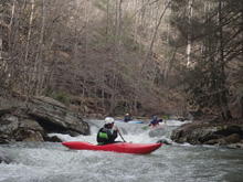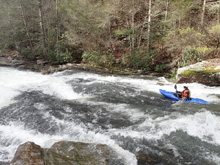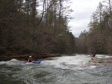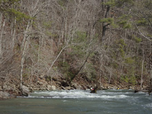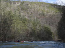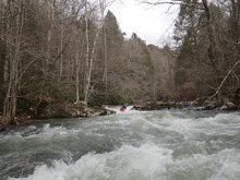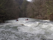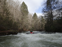 Below this, the river's pace backs off, though several small stair step slides keep you entertained before you get to Tiny Piney's grand finale, "Aircraft Carrier," which is a great long slide. Before long, Mammy's Creek enters quickly followed by Falls Creek. Surf waves become better in this section as the volume ramps up. Then you get to Whites Creek where the surf is fantastic in a few spots. After a mile on Whites the action peeters off to take-out.