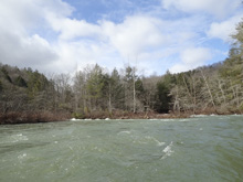 Downstream, you are greeted with entertaining rapids, mind the undercut left wall in the exit of Time Warp. About a half mile downstream is a boulder garden that looks like you want to go to the right with 75% of the flow, however this ends in a sieve which has caused numerous near-death experiences. Instead, go to the left of the rock pile island. If you have in your mind "when in doubt, go left" then you should be able to figure it out, it hit me as pretty obvious when I was above it, with that information, even though the sieve was over a blind horizon.