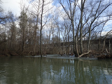 Put-in: Go back out to highway 27, you can either illegally try to turn left or go down to the right to turn around. We did the illegal turn. Follow US-27 north for 4.4 miles before turning left onto US-70. Continue on US-70 for 2.8 miles. We parked on the shoulder on the left, immediately before the bridge. We then walked down the upstream side's embankment which was easy enough.