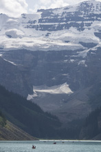 After the run, since we were in the area, we decided to go check out the iconic Lake Louise proper. Parking here fills up early, but at this point it was late afternoon, and we hoped that parking may be opening up and were right. So we spent an hour walking around with the hoards of people. I have to say, it was pretty... but, if you are willing to hike, there are a dozen other easily accessible lakes that are similar and much less crowded.