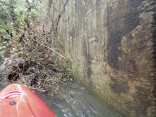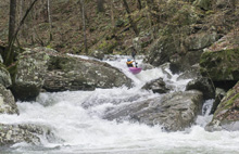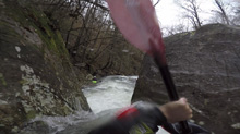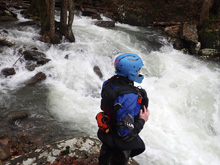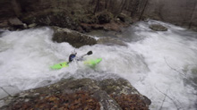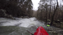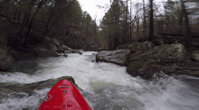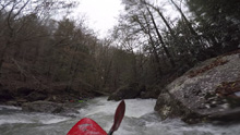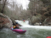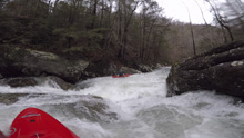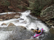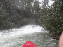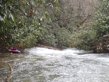 Upper Pocket Pussy (IV to IV+). Scout right. This one has a boof on the right that you want to run with a little left angle. This will help you clear the undercut jutting out on the right in the pinch exit immediately below. I imagine as flows rise, and this small pool before the exit backs up, this one gets some teeth.