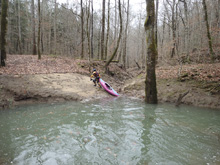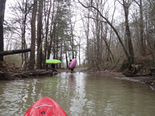 There are two options to take-out. The common option is to hike out after the rapids, some 700 ft elevation in about a mile, and then depending on the 4x4 capability of your car, potentially another 0.8 miles to the pavement. Using Diane's pregnancy as a great excuse again, we decided that her carrying her boat that far would exceed the strenuous level of activity that she has been told to avoid. So we looked at plan B. Plan B is to continue paddling, apparently a lot of water disappears into a sink, and there are forests of trees to dodge, as you paddle out 4-6 miles on the Little Sequatchie River, but to Diane and I, that still seemed favorable. Luckily, Jim and Caleb were both also ok with that plan. And as luck would have it, one of the family members who live on the farm at take out was walking around, and was super nice and welcoming. This was good because the access is tucked on the far side of their farm, though I think it is a public road, having the local family be cool is certainly nice... so future kayakers, be considerate and don't ruin that! Also, while you are at it, buy some of their fine cheese (Sequatchie Cove Creamery) at a store near you!