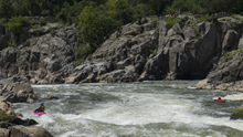 Put-in: From DC, take the George Washington Memorial Parkway to Us-495. Cross the Potomac on US495 and immediately exit to take Clara Barton Parkway and head upriver. This quickly T's with MacArthur Blvd, turn left and continue heading up river. In 3.4 miles you will get to the park entrance. It is ~$30 for a year pass for the park, or ~$10. Park, and walk down to the canal water. Cross the canal and get out using the stones on the far side (to limit erosion). Then head on the small trail down to the river just through the woods. Put on here.