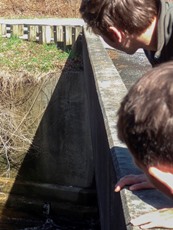 Log Slot (IV). This small 3 foot ledge use to have a log in it to mess with you, when thrown with the undercut on the right and the recirc a lot of swims have occurred here. The log is gone (2015) and the ledge was best run driving left but straightening for the boof. It is pool to pool.