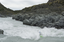 The run starts off with some flat water in a wide valley that is quite scenic before the river is constricted between walls and the rapids start. The rapids are brief, contained in the straight away as the river bends southerly from its eastern track. This river is runnable all a wide range of flows, ranging from 40 to ~300 cumecs. The holes are apparently stickier lower, but the river would likely be a roller coaster of action at the higher flows. As it was, we had 93 cumecs (3,284 cfs) which felt like plenty. We were able to catch eddies to scout, and the eddies weren't too surgy, and the holes were flushing well enough. I can only imagine at double the flow it is a different beast!
