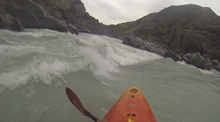The Pinch (IV- to IV). The next section was a long busy read and run section that could spell disaster if you were to flip and not hit your roll. OK, maybe not disaster, but at our flow there was no recovery time in here before Hell's Gate. In fact it took some control just to catch an eddy. And then an aggressive ferry to a small eddy to scout the bottom rapid below from the right. The rapid itself was ok, just follow the water to the right and back left.