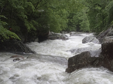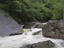 - Timber-Rattler (IV+ to V). A couple different entrances are available, boof over the hole to the right or a sneak on the left, if you sneak mind the fold as you reenter the main flow. The main move is different at different flows, at low flow ferry from left to right below the fan rock to then line up the boof over the large hole at the bottom. At higher flows you can boof the left side of the fan rock. The bottom hole is worse at lower flows.