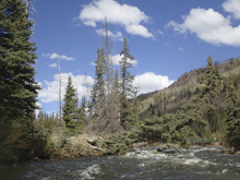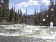 | Flows: | 350 to ~2,500 cfs. Colorado DWR Rio Grande at Thirty Mile Bridge near Creede gauge |