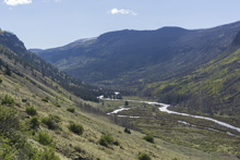 Once on the water, you start in a wide open valley. As the valley begins to end you have the first class III rapid which ends in a pretty small canyon, very small, like a 15 foot tall box canyon. Is this the box? A fisherman called me over 100 yards downstream to ask me just that question. I couldn't give him an answer other than “I hope not!” Not too far downstream you get to a proper canyon section which at our flow had long sections of III- which gave an overall feeling of class III. But it was fairly non-descript so it wasn't my favorite style of whitewater honestly. The canyon was pretty though, and as the river rounds the corner to take-out and you see across the valet, I think the scenery hits its peak.