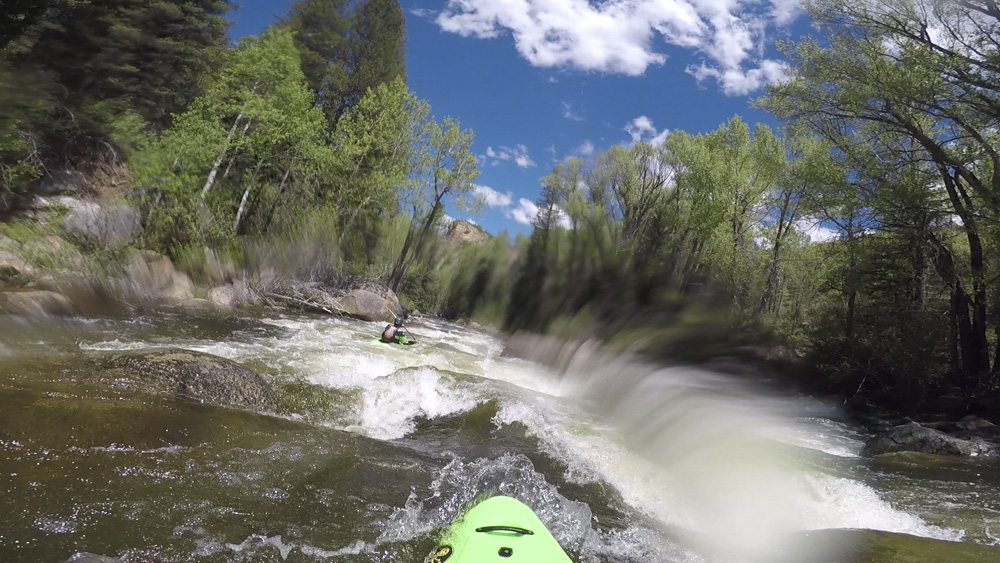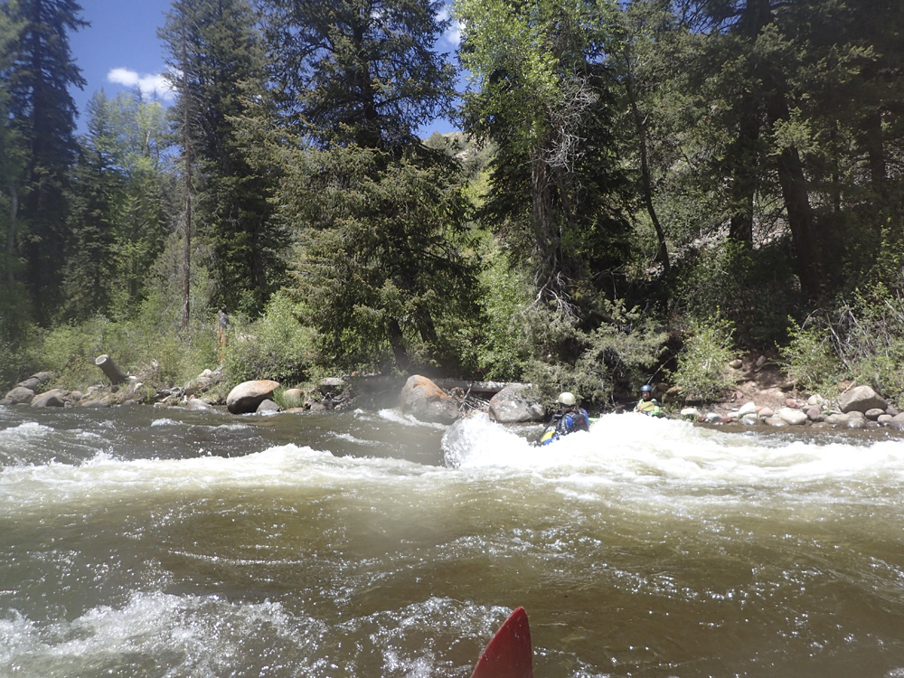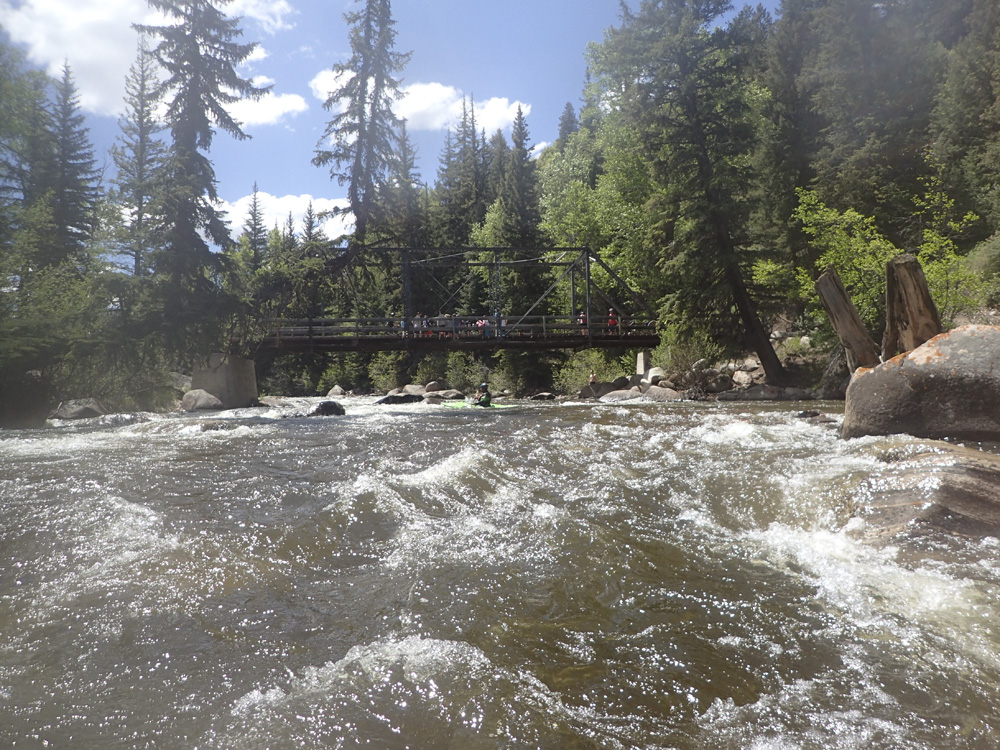This run is a classic class IV run. At our flow of 700 cfs or so it was a bit on the low side, but the smooth granite rocks made the run a great splat and play run. Maybe the least abusive rock in all of Colorado! The run is mostly boulder gardens, with obvious channels and boofs to hit. The one exception is Slaughterhouse Falls which is a bedrock ledge drop which is not the hardest, but certainly the most out of character. It is also the waterfall that was featured on the cover of John Denver's "Rocky Mountain High" album. So that is a fun fact for you.
