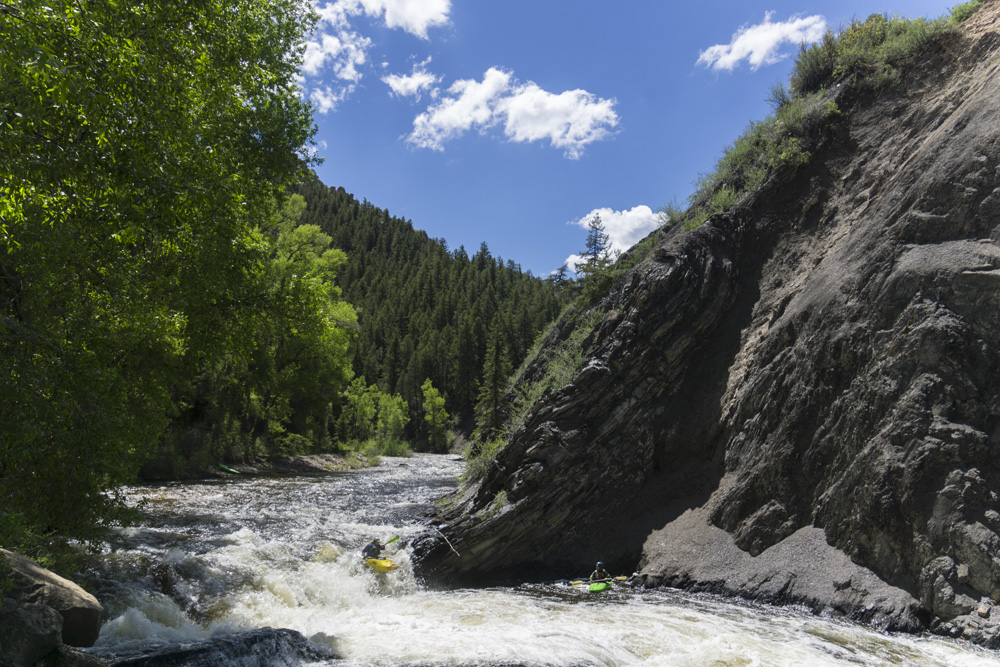 - Slaughterhouse Falls (III+ to IV). The cover of John Denver's "Rocky Mountain High" was photographed here, so that's fun. At most flows you will boof far left. At high flows a right line opens up.