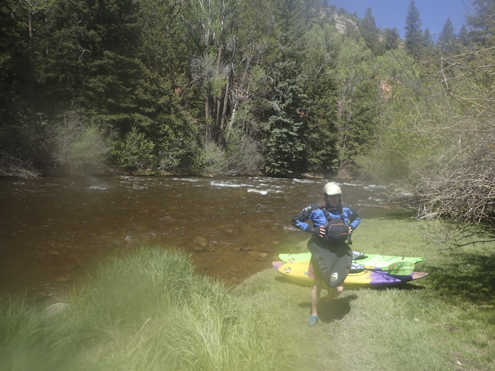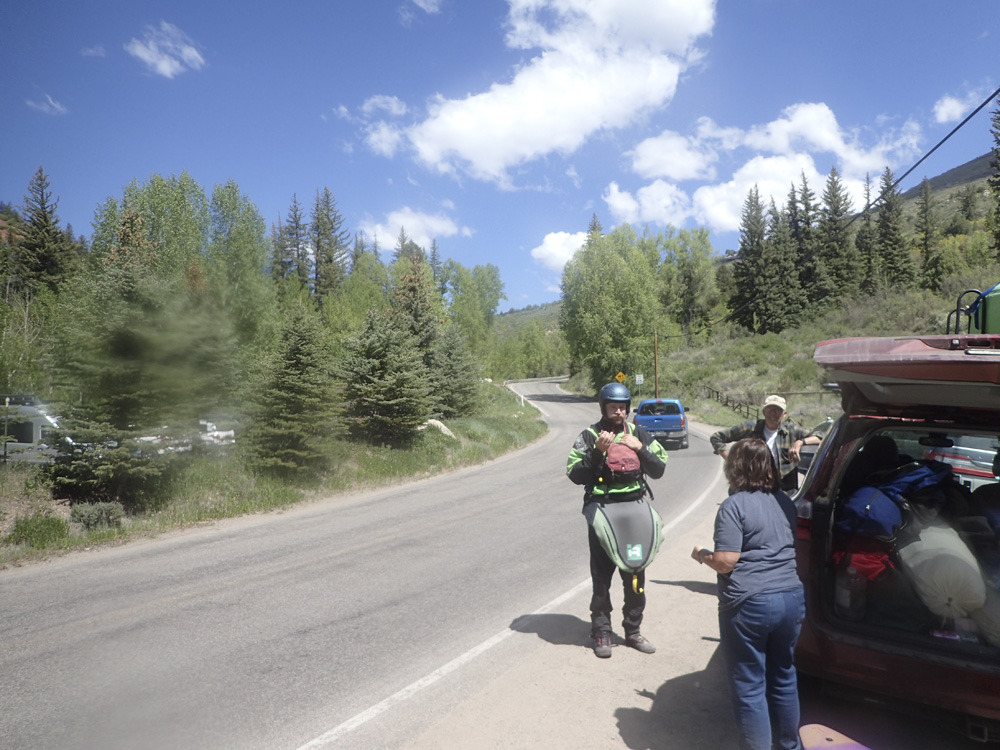 Leaving Buena Vista we headed up over Independence Pass and the Continental Divide. We saw Lake Creek had a bunch of water in it, but we weren't looking for that class V to V+ action. We also got service and saw that if we had been on top of it in the morning we could have gotten the first day of snowmelt in the Clear Creek of the Ark. But we didn't. We had made plans to meet up with Laura and Steve out in Glenwood Springs. So we drove towards Aspen with hopes of getting Castle Creek into the Roaring Fork. Arriving there we determined Castle Creek was not running and decided to just do Roaring. At put-in, as we were getting ready, a car slowed down and we quickly noticed our friend Nate White. I knew he lived in Carbondale but I honestly had no idea where that was. It turns out it is the next town downstream! So anyways, we convinced him to join us for another lap (he had just gotten off) and he ended up sharing time with us that evening and the next day as well. Fortuitous meeting!