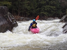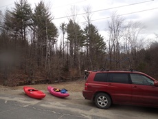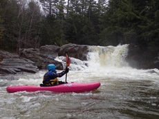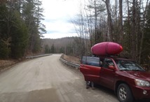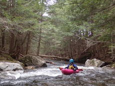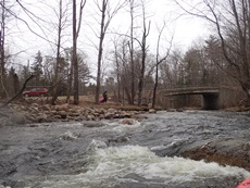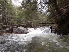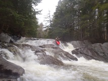 Put-in: Head back the way you can 100 yard, turn right continuing up North Dorchester Rd. Follow this 1.9 miles steeply up a couple of hills (I had to walk my bike finally near the end!) before turning left onto Bickford Woods Rd. Park on the far side of the bridge over Rocky Brook. You can also put-in on the South Baker upstream a mile of the confluence. I know that just above the confluence there was a cool drop, and after our trip I saw a video which actually made several other rapids look pretty good. Look at a map for those directions, it is easy to figure out.