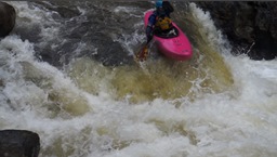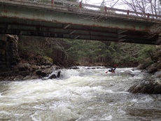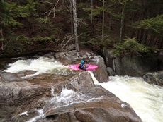 Boof (IV). Just downstream is a very nice boof down the left over a bit of a hole in a walled out area. At high flows this spot could potentially get dicey. But the boof is excellent so I think you would just sail right over. In 2015 it was made a little harder by a sketch log jam just downstream... but I am sure that will wash away.