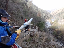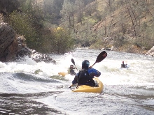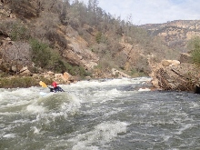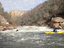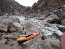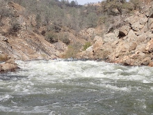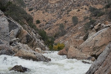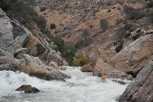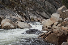 Take-out: Find your way to the town of Auberry 40 or so minutes north east from Fresno. Once in town, take Powerhouse Rd towards New Auberry. After 1.8 miles, turn left on Smalley Rd. Follow this for 5.3 miles down to the new powerhouse where the road ends. This is the "K1 to K2" take-out. For the partial run (if "K1 to K2" is too high), head back up Smalley Rd for 1.0 miles. Just past the campground turn left at the first junction you have come to since leaving the new powerhouse. There is a parking area 100 feet later on your right. Park here and then hike further down the road another 300 ft and turn left at a gated road. A short ways later there is a fork, take the left fork down to the old powerhouse. Scramble down the last 50 feet to the river. The total hike is 0.6 miles.