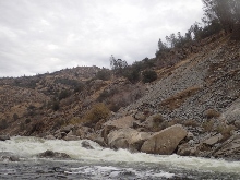 Put-in: Take Smalley Rd 5.3 miles back up to Powerhouse Rd. Turn left on Powerhouse Rd and follow it for 5.6 miles to the bridge over the river at the top of Kerckhoff Lake. Continue a little over a quarter mile to one of the access points along the lake before the road pulls away.