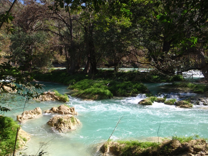 Take-out: 5 km past the Tampaon Put-in turn off of Highway 70, turn left at Tanchachin sign (29 k from Ciudad Valles). Then again left at the sign to "Tamul" painted red on the cement wall. Continue down to the Rio Gallinas and park alongside the end of the road.