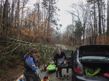 Due to being mid winter, gates were locked. We knew this. The gates to the put-in and take-out of the Upper are closed from January to April. So we set take-out at the lake, paddling the full lower run as well. Heading to the top, Jim's estimate was that we would have a 2-3 mile hike to the river. A few of us brought backpacks as the hike is entirely on a dirt road. That allowed for us to make good time, and just under 1.5 hours later we arrived at the river, having hiked in 4 miles. Well, that took longer than we expected. But we still had plenty of time. But, looking at the river, it was deemed high-side of medium. A few minutes later some other folks from Knoxville coming walking up having down the bushwhack 20 minute roto fight straight down the hill side to arrive at put-in, and deemed it high. The concern on their face made me think it was higher than high, and Jim and Caleb (our "leads") amended their measurement to "yea it will be high."