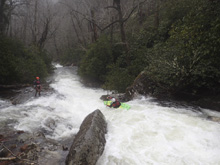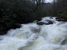 Take-out/Put-in (Gate Open): After April (not sure of the exact timing) the gate should be open. In that case, go down to take-out from the top. From Tellico Plains, take Old State Hwy 165 (Cherohala Skyway) up the Tellico. Continue for 24.9 miles. Just after popping into North Carolina, turn left on Old Santeetlah Rd which turns dirt. Pass one gate here... this is where you hike in to put-in from if the gate is closed. Continue down the dirt road for 2.7 miles. You will come to another dirt road going off to your right. That is the road to put in (1.4 more miles to the bridge and also has a gate at the start). For take-out, continue heading downriver another 1.1 miles. There is a gate. You can park near there... or head down another few tenths of a mile to one of the easy access points at the campgrounds below. A14 is an easy one.