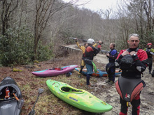 Arriving at the take-out for Santeetlah the flow was obviously high. I thought it would be deemed too high and thus we would plan B over to the nearby and just as classic Snowbird Creek. However, this river also is known for dropping incredibly fast. Typically, if you find the water a bit high, you wait an hour and then it will have dropped. Wait a few hours and you will miss it entirely. So, with that in mind, we figured it would be ok by the time we got to the river.