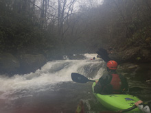 Hallway (V). One of the best rapids on the run. First is a small slide that we ran down the far left into an eddy. Then a small rapid led to the lip of a narrow Toxaway-esqe rapid. Just run down the center and don't piton the right wall!