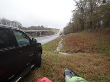 After our morning run on South Sauty Creek, Matt Huddleston, Diane and I went towards Short Creek for an afternoon run. The beta on this one has changed over the years. People used to put in at the Hustleville Rd. But, the parking there is illegal and the access not great. People then moved upriver 3 miles to the access at Martling Rd. This access however is known for break-ins. So, now, people have moved 1 mile further up river to the Highway 75 bridge. This now makes the old Alabama Whitewater's (and American Whitewater's) page's write-up for the Upper and Lower sections of this run one and the same. At the 75 bridge, we found parking enough for 1 car in a culvert cover area, I am not sure where people normally park.