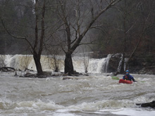 Put-in: From the take-out, cross the lake to the west side on AL-227. Continue for 1.6 miles before turning left onto Gerald Bryant Rd which in 0.2 miles cuts the corner to Hustleville Rd. Turn left onto Hustleville Rd. Follow for 7.4 miles, if you keep you eyes open, around the half way spot on this road crosses the river and you can get a glimpse down at the falls downstream. Anyways, after the 7.4 miles, then turn right onto AL-75S. Go 1.5 miles, cross the river, make a u-turn and then park in the spot for one car about 100 yards before the bridge. There was easy access on that side of the river.