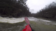 - Double Drop (III+ to IV). A nice right cliff wall continues down from the Grotto sequence, I eddied out far right and ran down a nice tongue and then boofed a fluffy hole. Mind the house size rock on the right, I wouldn't want to get pushed that way. Matt and Diane ran a more direct line which started with a small boof at the top where my tongue dropped in behind.