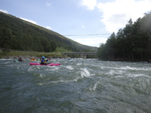 - Put-in Bridge (III-). Directly below put-in is a small rapid formed by the bridge pillars, there was a good surf wave in the right most channel.