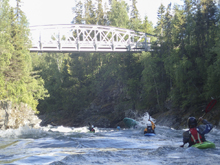 - Put-in Bridge (III). Directly below put-in is a bridge, the left channel was fluffy and fun, just stay away from the right half of that channel as at high flow a hole forms. The right channel is easy.