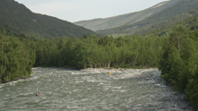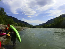 - Surf Spot (III-). After some cool scenery in the gorge you get to a cool surf spot with eddy service on the right. It is a nice set of waves. Just be aware that downstream the water goes into the right shore and it is enough to flip rafts.