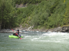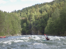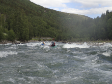 We actually ran the Play Run a few times. First was the evening of the Store Ula, we made a quick lap that night prior to cooking dinner and heading to the Kayak Camp. The second time was after our day starting on the Åsengjuvet. Third, for some of the group was later that same day as safety kayakers for Paul's rafting group as the water was quite high and only inches from the rafting company's cut off.