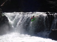 - Pair of Kings (IV to IV+). A short drop, there is a good eddy on the right at the top though you scout from the left. You will recognize it by the truck size rock on the left and horizon line below. We entered left and kicked center. At lower flows you have to run right. The hole at the bottom can be mean and has swum plenty of people.