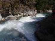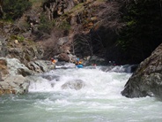 - Guillotine (IV to IV+). Run down the center, the water refracts off the left wall into a room of doom on the right. Just downstream is a sweet double set class IV-IV+ rapid. We ran the left channel driving right as we found a rock in the middle of that channel. The second set we ran down the middle to the hole below. A couple of class IV boogies rapids keep you busy below.