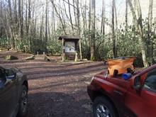 Put-in: go back out to NC-143, and turn left. This is the Cherahola Skyway. Follow this for 14.8 miles to the parking area at the Hooper Bald Trailhead.