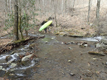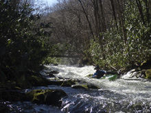 - Micro (II to III). This section of the creek is very very micro. If you aren't hitting rocks, I would be concerened that you have very very high flow. Every once and a while you will come to a nice bedrock ledge or slide. There was also a cool pinch in here as well. You collect water quickly from tributaries though, by 0.35 miles in you should have a small creek's worth.
