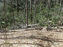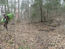 It will then sidehill for a bit before dropping steeply to a branch of the river. Cross the creek (river left to right).