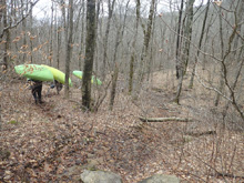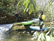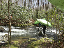 As the trail hits Snowbird Creek, you can turn left and go down river left... this trail follows the river the whole way, though it crosses it often. Walk downhill until you like the flow of water, we crossed a few times and then put on. We manked down for a half mile. We should have hiked a little more as it got much better after Bearpen Branch entered.