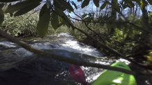 Island Falls (V). The biggest rapid of the run, scouting looked to be a pain due to the rhodo. So instead, we entered and eddied out against the center island. Stable there, we peaked over the edge to one at a time take a peek before running it. Its also probably why none of us had a good line on the top. We all tried to boof left but a tall cushion was present coming off the left which we nearly all struggled getting over and straightening out after. I think entering left (instead of catching our eddy at the lip in the middle) would set you up MUCH better. But to know that, you have to deal with rhodo hell to scout.