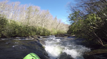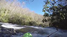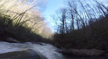 Once at the river, we found flow low, but floatable so we put on before Bearpen Branch and manked our way down to where enough water had collected to begin to feel like boating. Quickly, you get to the first big rapid, a straight forward slide. It is worth having one look at it on the right to ensure it is clear of wood. Below, things continue in the sorta manky manner down to the Middle Falls, which is probably the most time consuming place. For starters, it sneaks up on you, and it has a lead in. So scout early on the left. The lead in goes to a shallow lip of a 20 foot falls that you want to hit in the right spot. Use the trail and spurs to scout it on the left. Below, things get a little better, but are mostly class III. Things change however when you cross under the trail bridge. This is the sign that you are getting to the last two big rapids. The first one reminded me of Staircase Falls on the Horsepasture River, though easier and less tall in each step. The second one is the most complicated rapid on the run, and requires a boof to the left of an island for a tricky ramp down around a large pocket hole at the base of the cascade. Drive left! Below this, the boogie ramps up. Now it is non-stop class IV, which with the wood threat, feels like class IV+ at times. The miles do go fast though, assuming the wood is avoidable and you are able to stay in your boat. And before you know it, you are done.