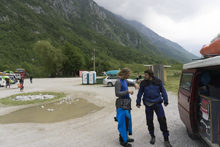 Take-out: In the town of Trnovo ob Soci, take the turn towards the river on the western most side of town. Just past the first row of houses turn right and follow past the houses to the first larger left turn. This leads quickly to another parking area which is take-out